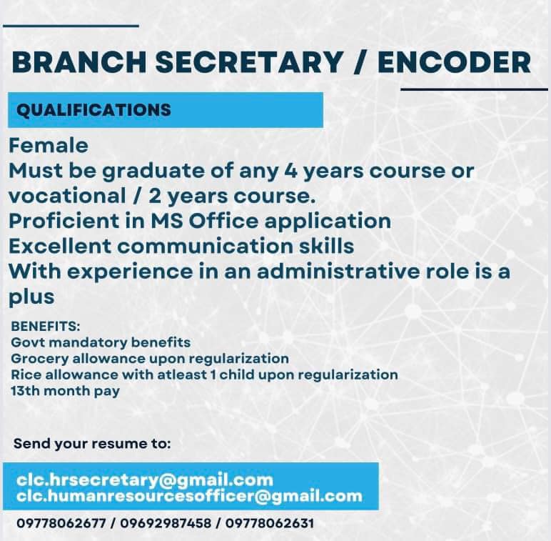 For interested applicants may also send your resume to clc.hrsecretary@gmail.com